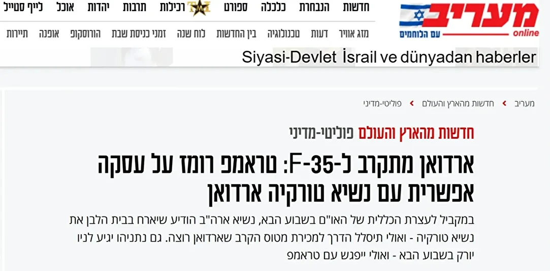 Bir diğer İsrail merkezli Times of Israel gazetesi ise, Erdoğan-Trump görüşmesinde olası F-35 anlaşmasının İsrail’de endişe oluşturduğunu vurguladı.